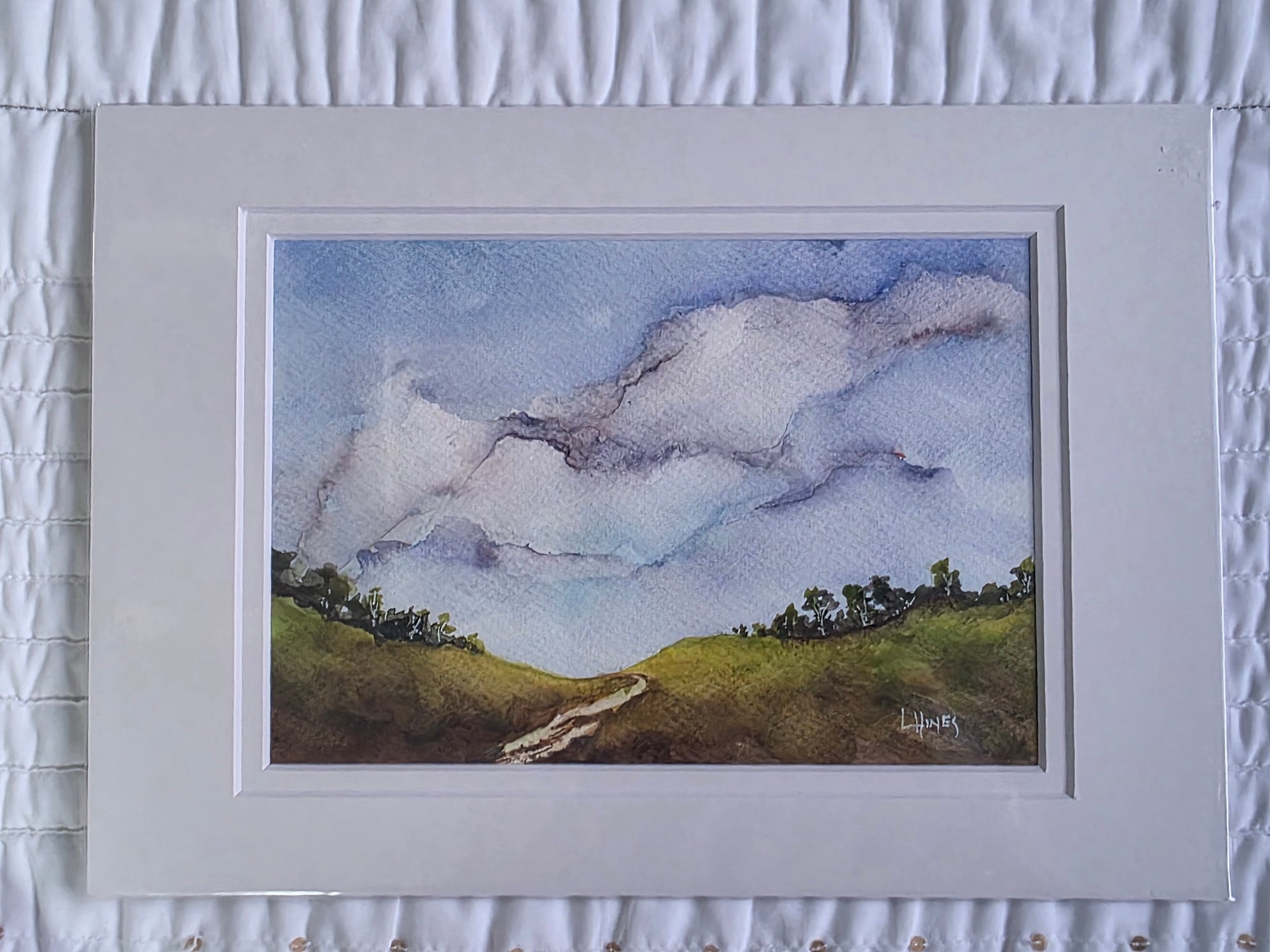 Small A5 watercolour painting. Displayed on A4 Mat w/- A5 Hole, backing board & clear cellophane packet. Will make a perfect gift.